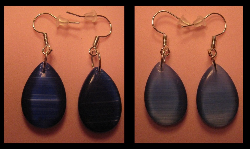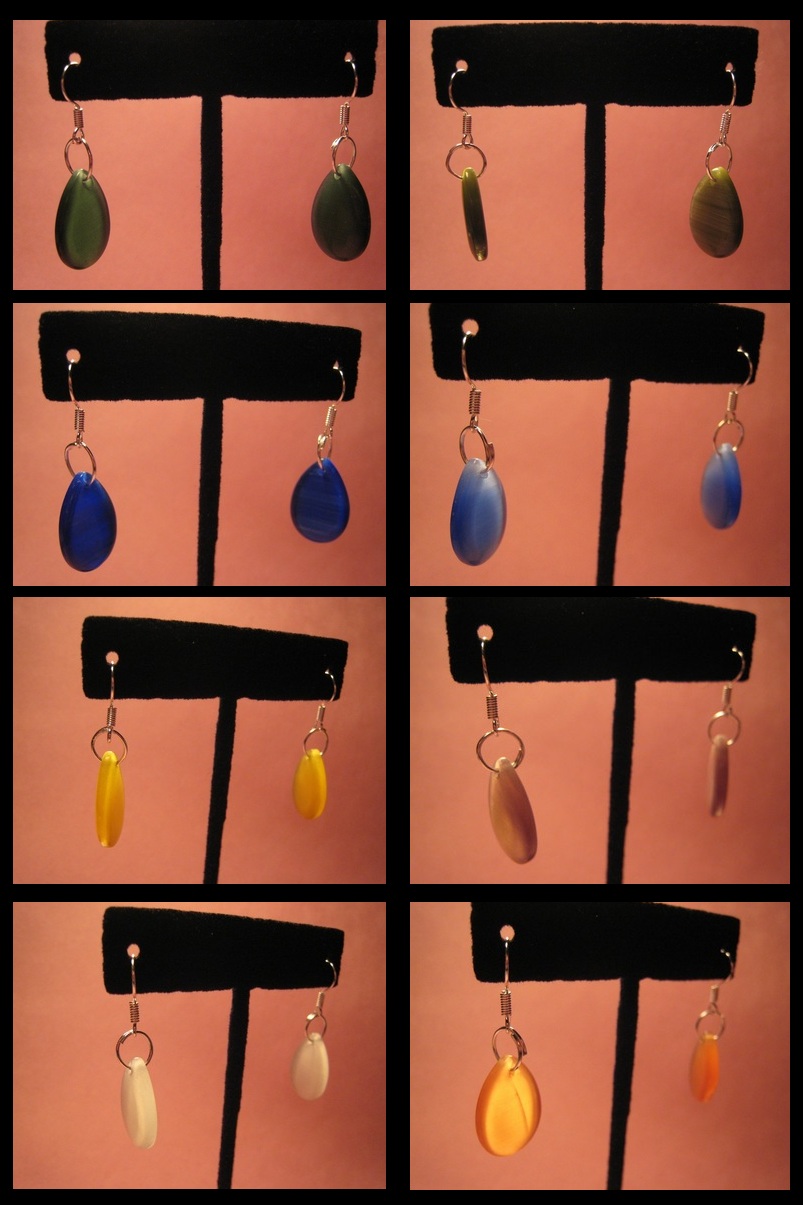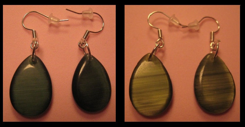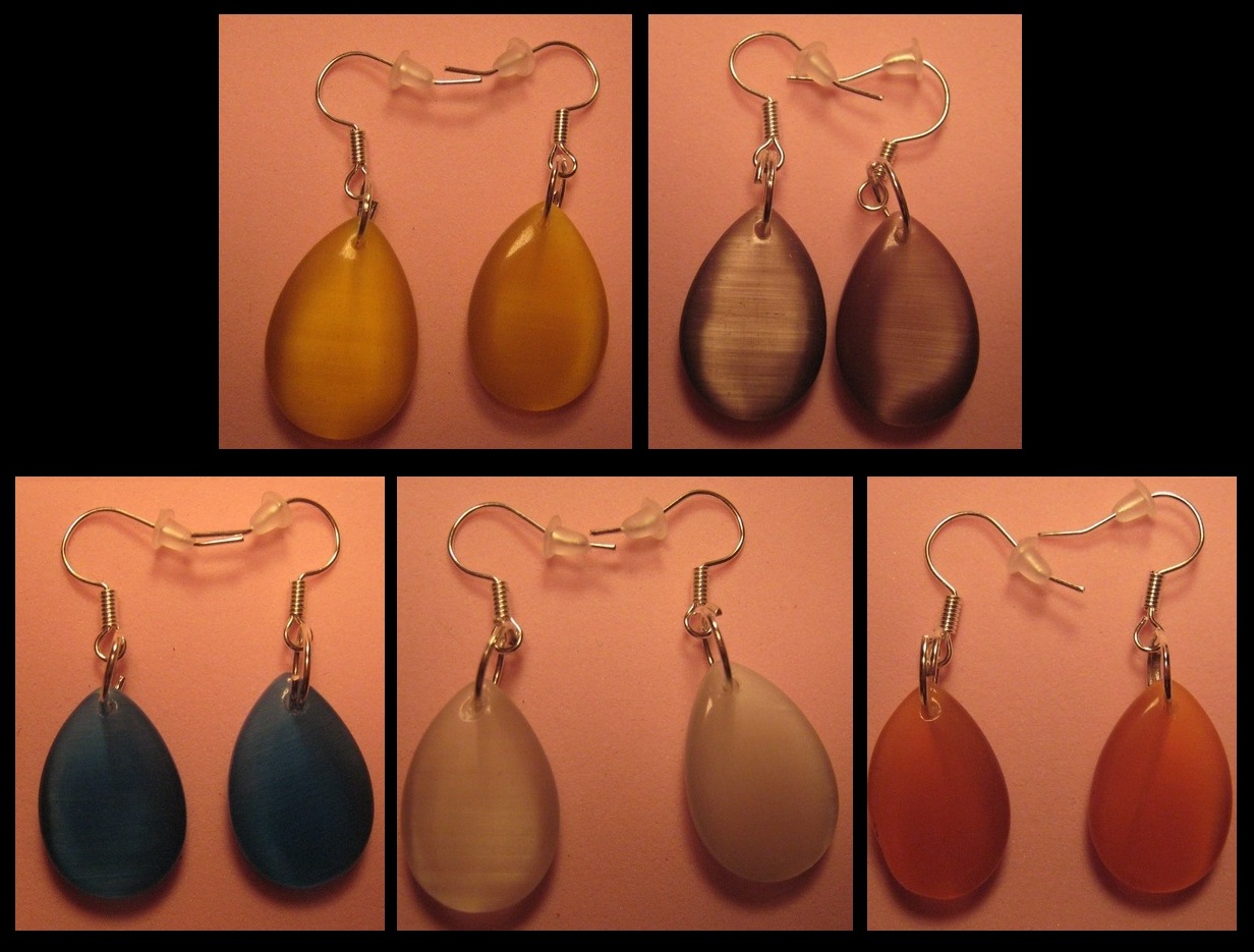 Tiny fiber optic strands are pressed together and tumbled to create the "eye" effect in these glass earrings measuring 1 1/2" long.