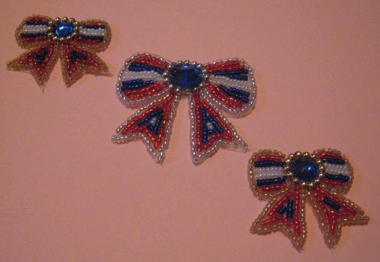 Smaller bows with gold seed beads around the edges measures: 1 1/2"x1 1/2"
