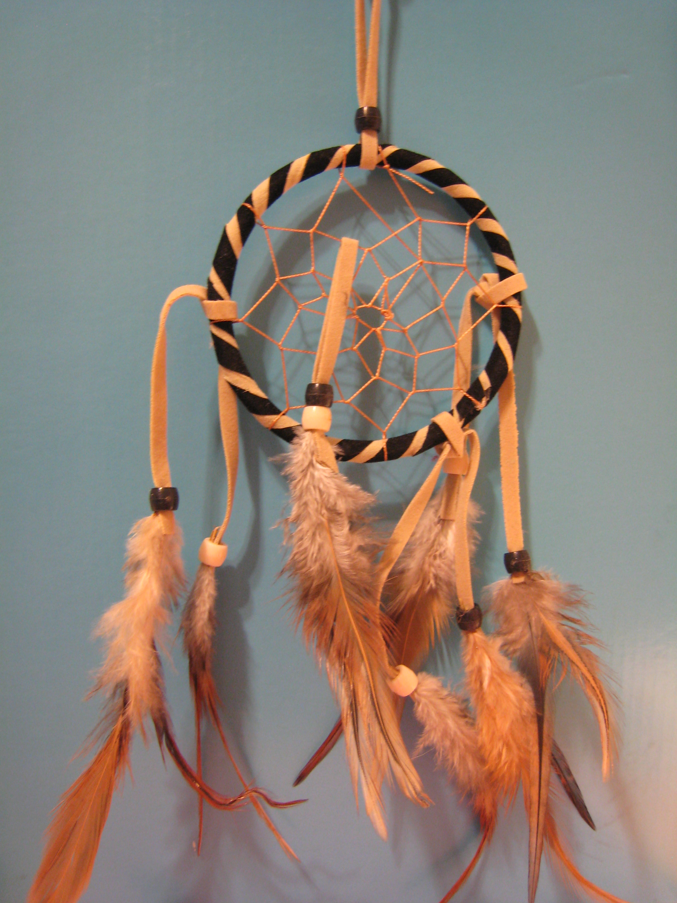 Dream Catchers are an ancient spiritual tool used to help assure good dreams to those that sleep under them. A dream catcher is usually placed over a place you would sleep where the morning light can hit it. As you sleep all dreams from the spirit world have to pass through the dream catcher.Only good dreams can pass through the hole in the center while the bad dreams are caught in the webbing and are destroyed by the morning light.