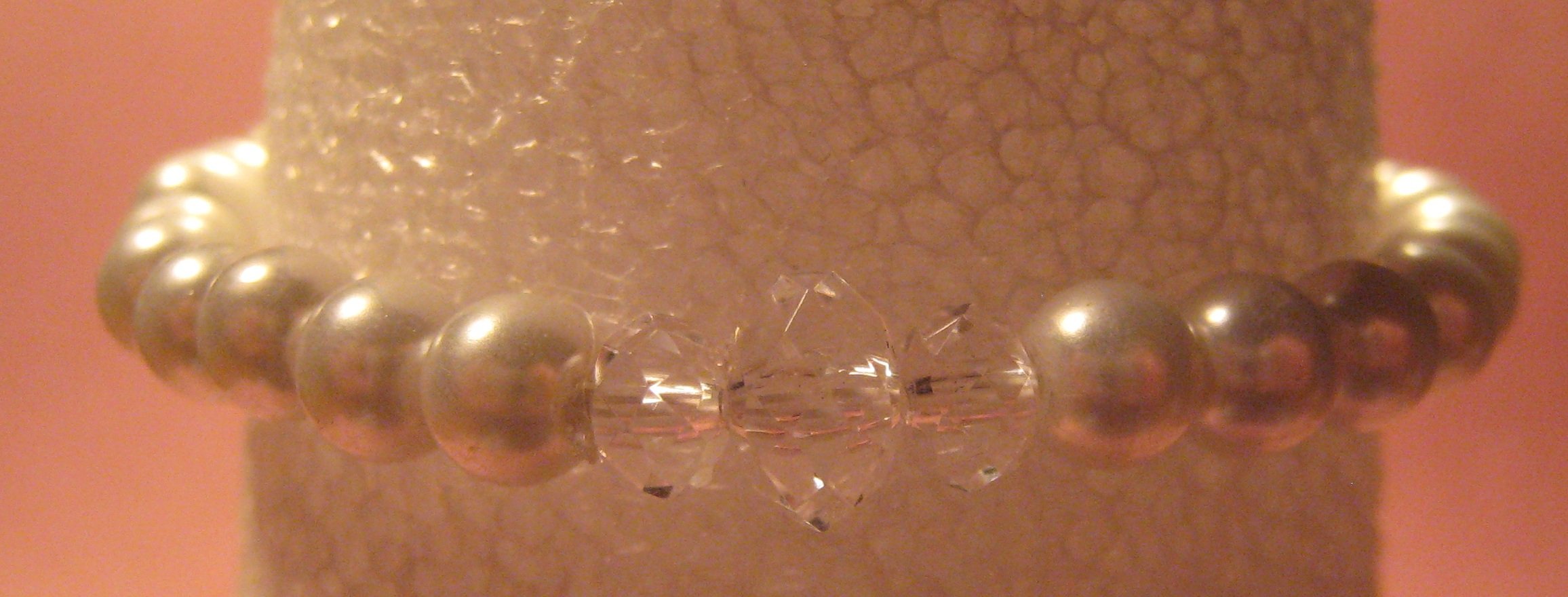 6mm Cultura Glass Pearls and 3 faceted assorted crystals adorn this pretty stretchy bracelet.