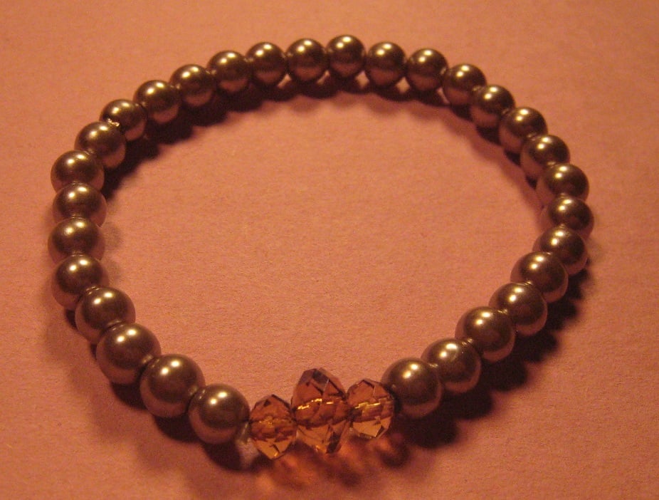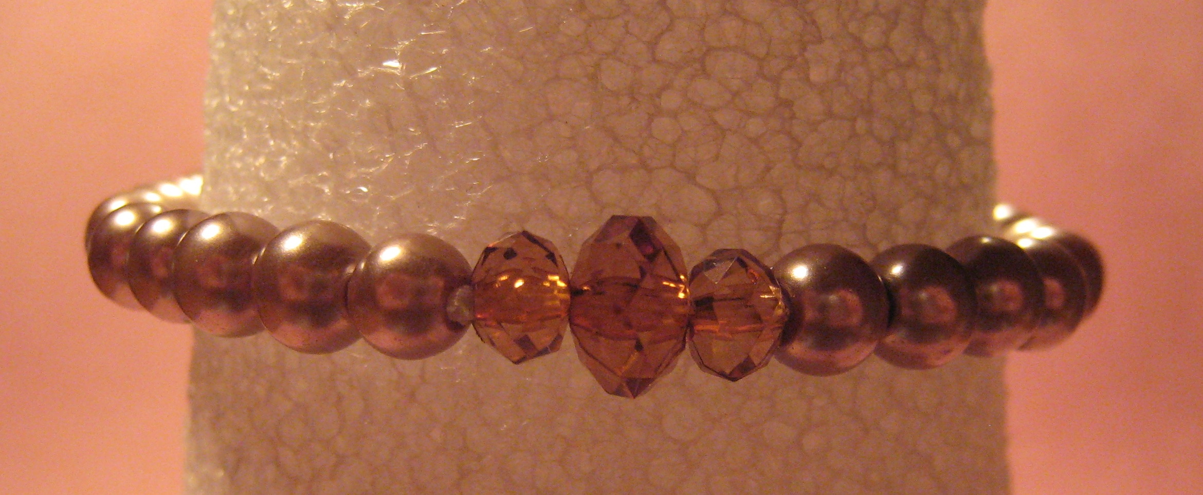 6mm Cultura Glass Pearls and 3 faceted assorted crystals adorn this pretty stretchy bracelet.