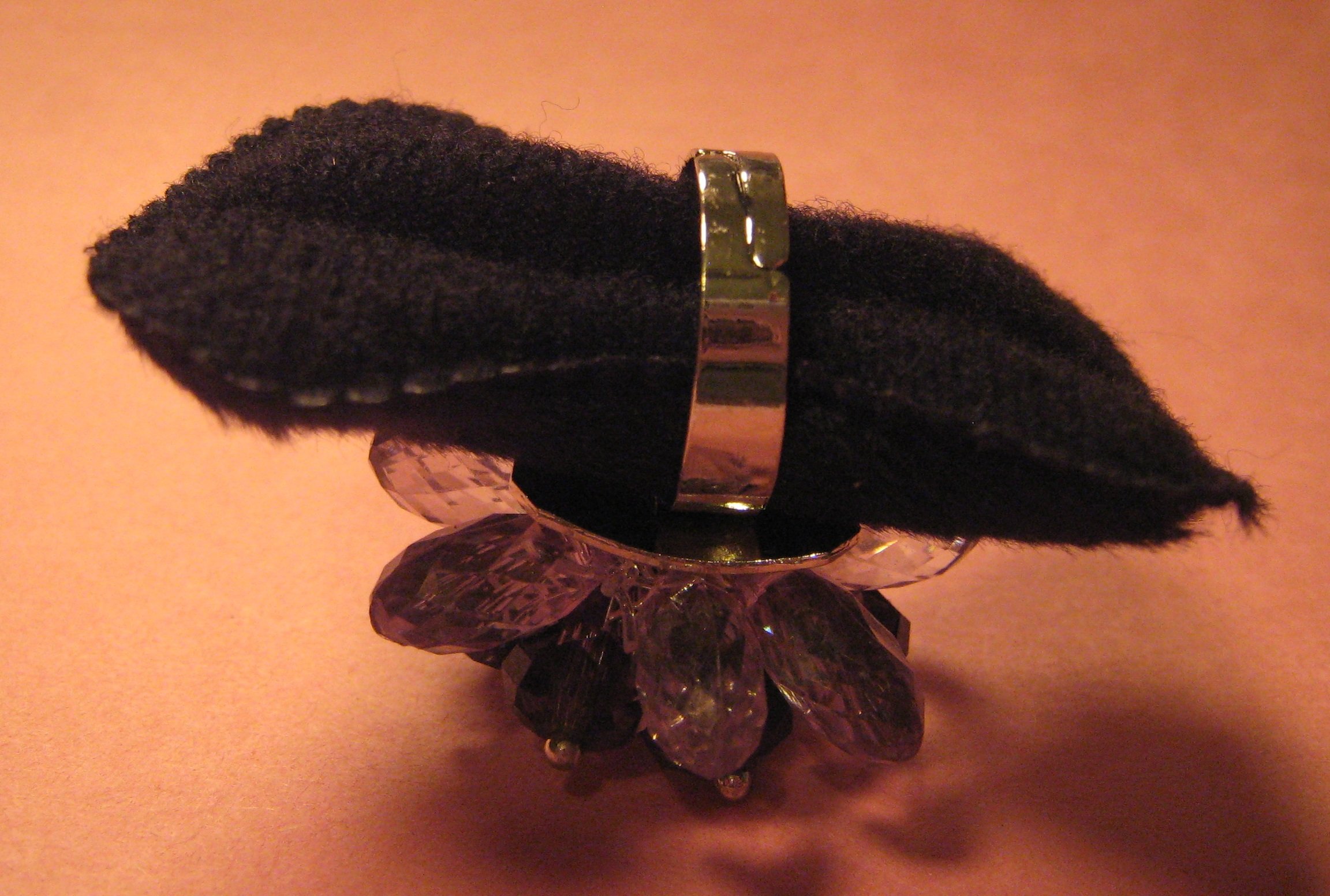 This beautiful ring would be a wonderful addition to any outfit! Made out of Austrian crystals and crystal faceted glass, this silver plated steel based adjustable ring can fit fingers sized 6-11.