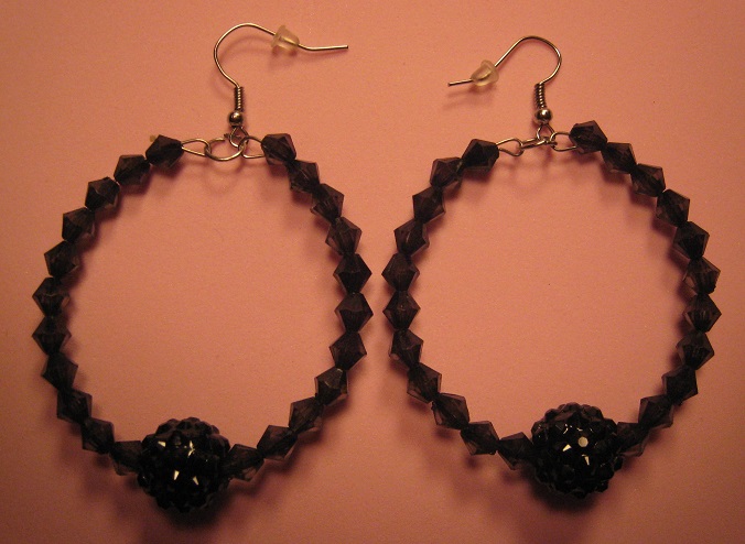 Pretty acrylic beads adorn these hoops measuring almost 2" across. The 10mm acrylic ball at the bottom and steel fish hook earwires finish off these lightweight earrings.