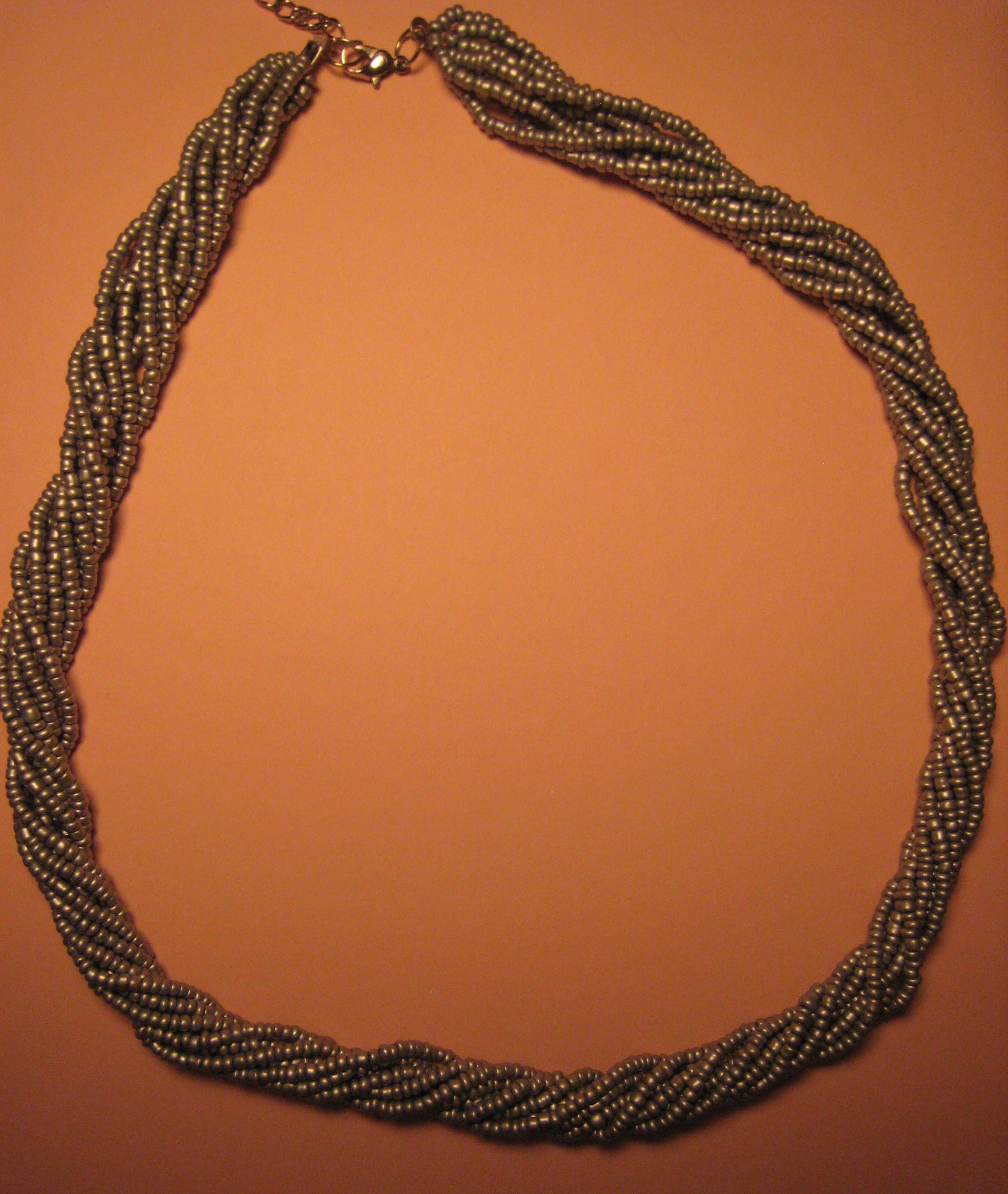 Multiple strands of tiny matte silver seed beads twisted into a beautiful, stylish necklace measuring 22-24" long.