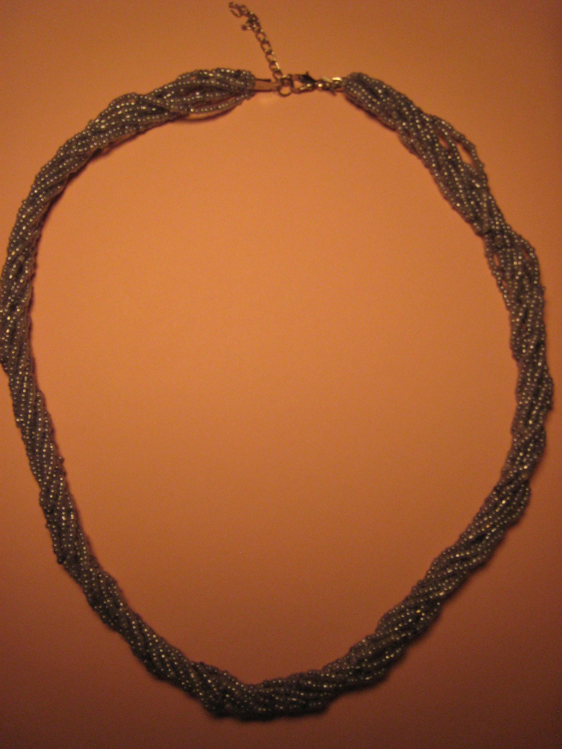 Multiple strands of tiny earthy gray seed beads twisted into a beautiful, stylish necklace measuring 22-24" long.