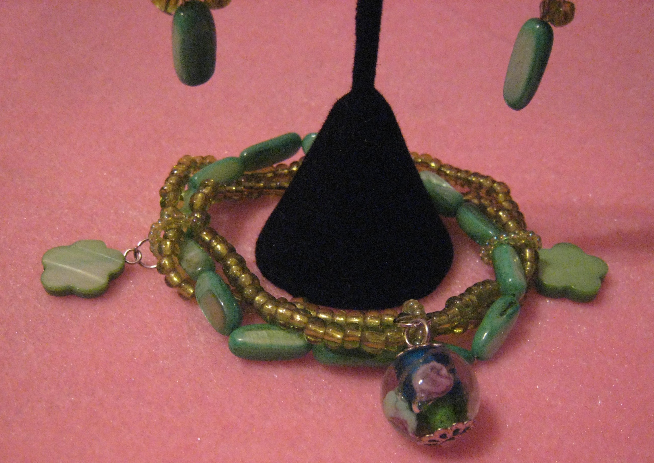 Green Flower Glass Bracelet Set