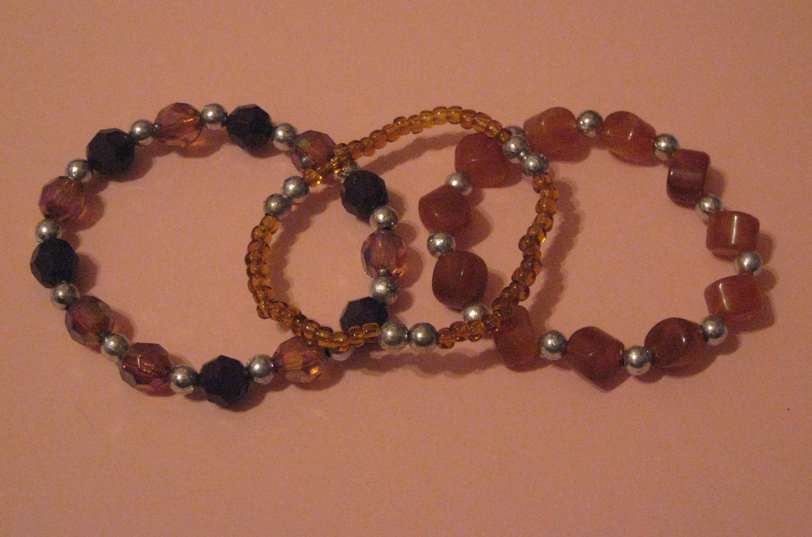 Lightweight and durable stretch bracelets highlighted with stylish beads in various shades of brown with silver spacer beads. Includes the 3 bracelets shown.