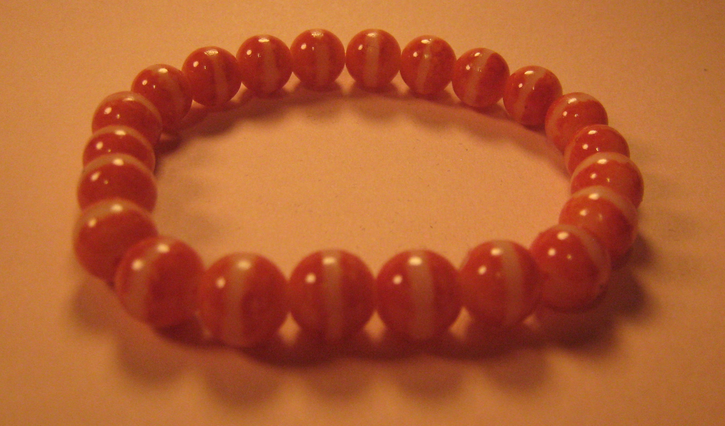 Perfect for any occasion, this bracelet made out of 8mm glass beads is fun and bold. 7" on elastic cording fits six- to eight-inch wrists.