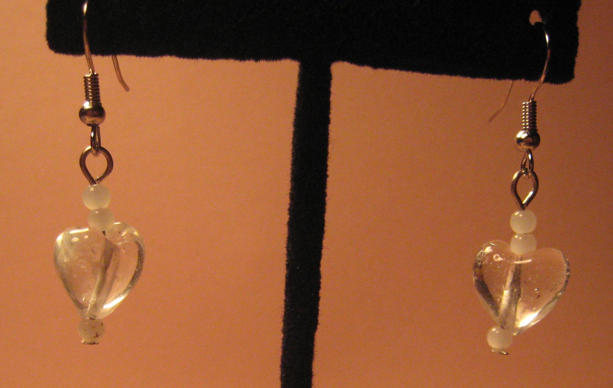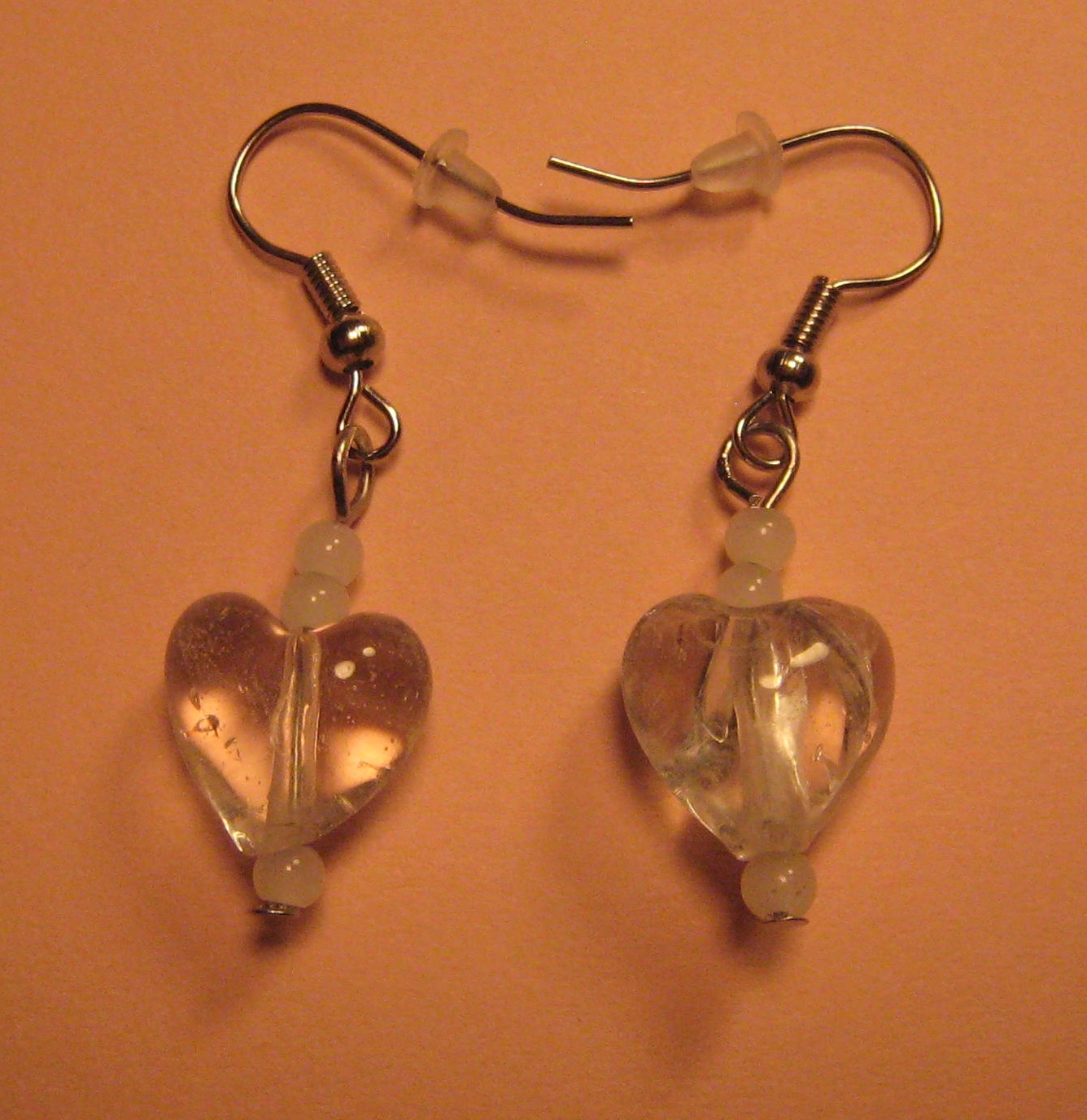 Adorable handmade glass earrings measure 1 1/2" long and have a steel fishhook earwire.