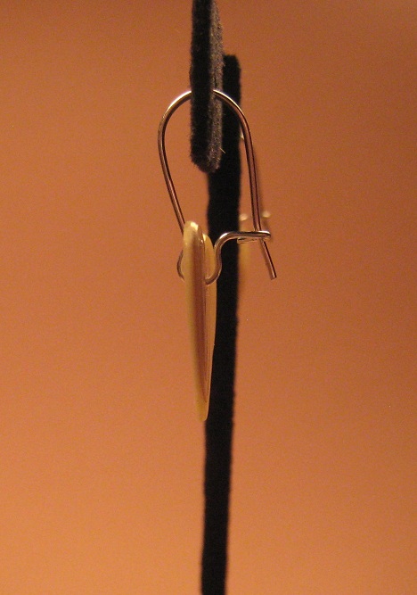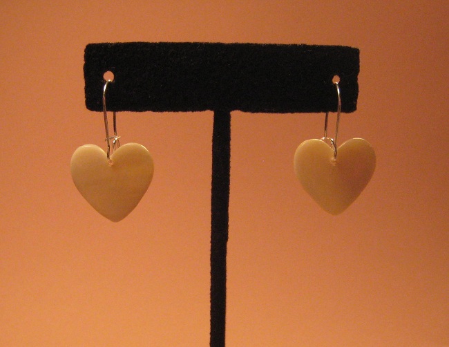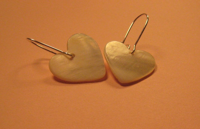 Beautiful mother-of-pearl hearts hang from kidney earwires made from silver plated steel.
