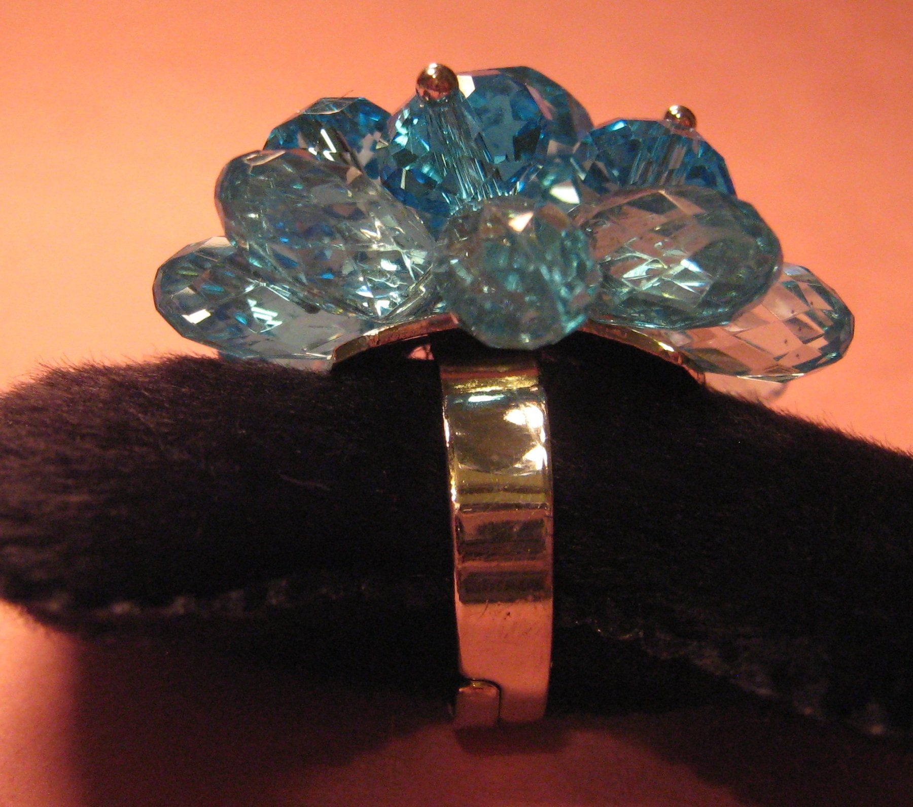This beautiful ring would be a wonderful addition to any outfit! Made out of Austrian crystals and crystal faceted glass, this silver plated steel based adjustable ring can fit fingers sized 6-11.