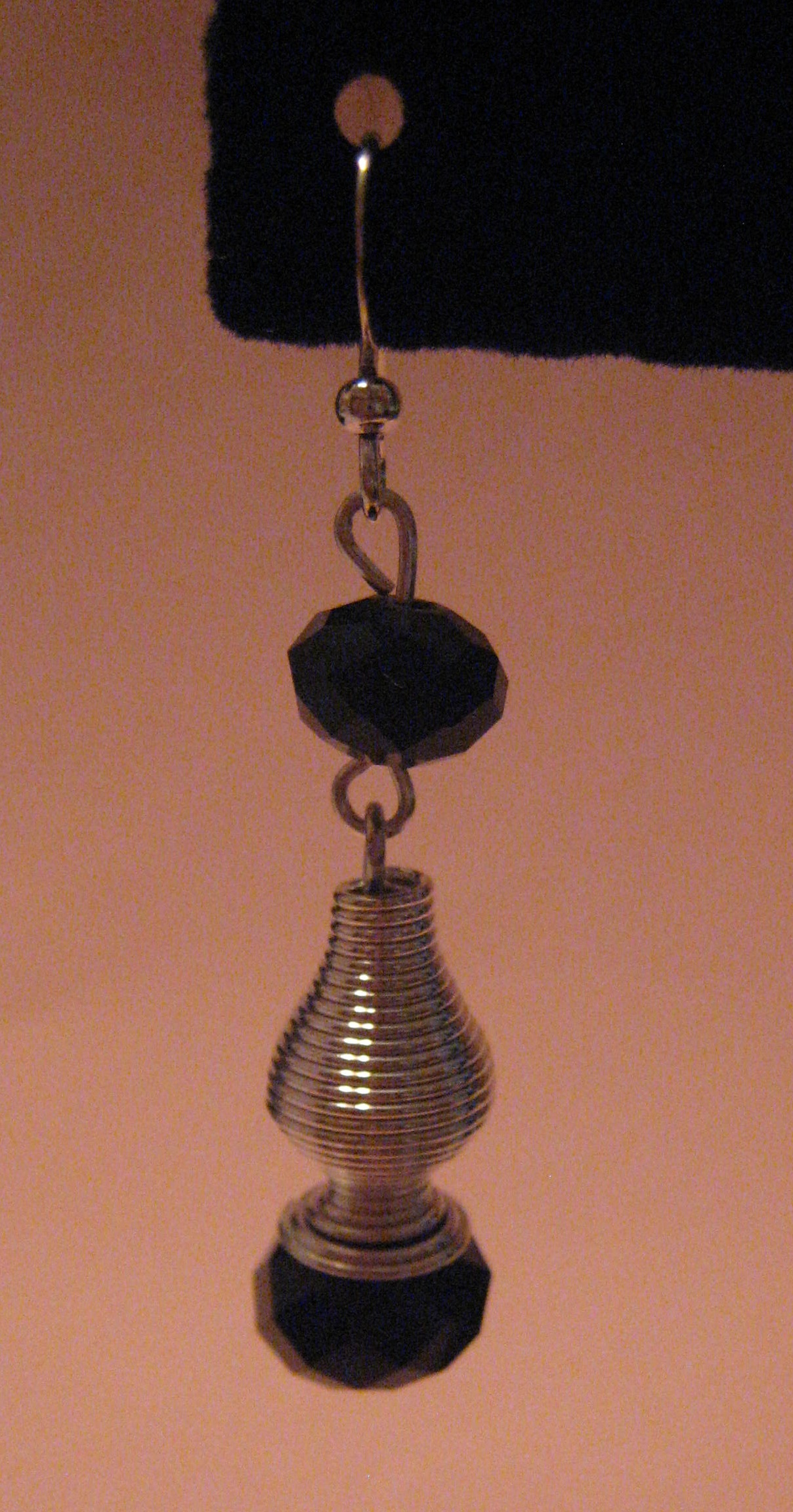 A beautiful 6mm Swarovski Crystal Rondelle bead atop a a sp coil with a 8mm rondelle bead on the bottom make up these dazzling earrings. Surgical steel fishhook earwire. Just under 2" long.