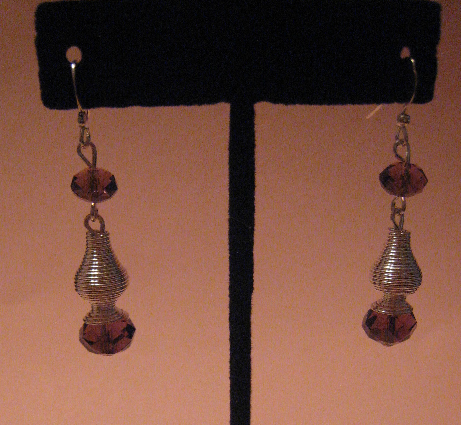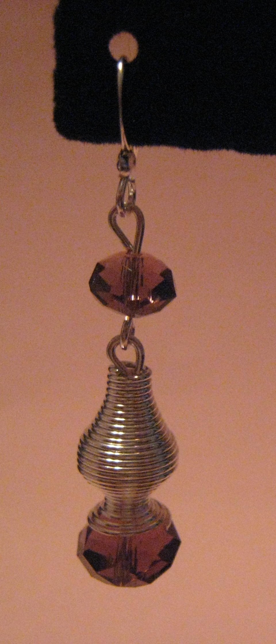 A beautiful 6mm Swarovski Crystal Rondelle bead atop a a sp coil with a 8mm rondelle bead on the bottom make up these dazzling earrings. Surgical steel fishhook earwire. Just under 2" long.