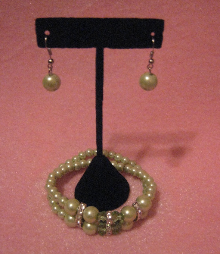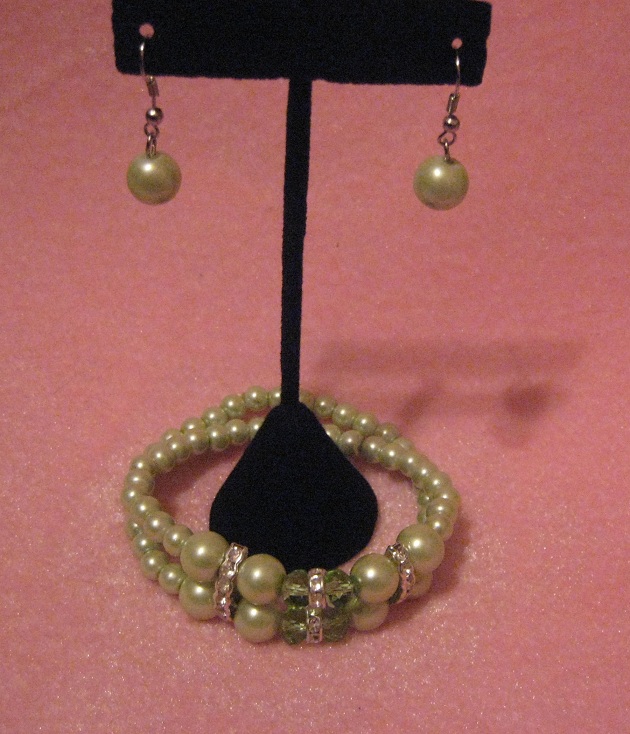 Beautiful various sized glass pearl, faceted crystals and rhinestone encrusted rondelle beads make up this double row stretch bracelet.