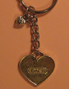 Vintage silver look pewter coach tag and heart charm make up this adorable key chain.