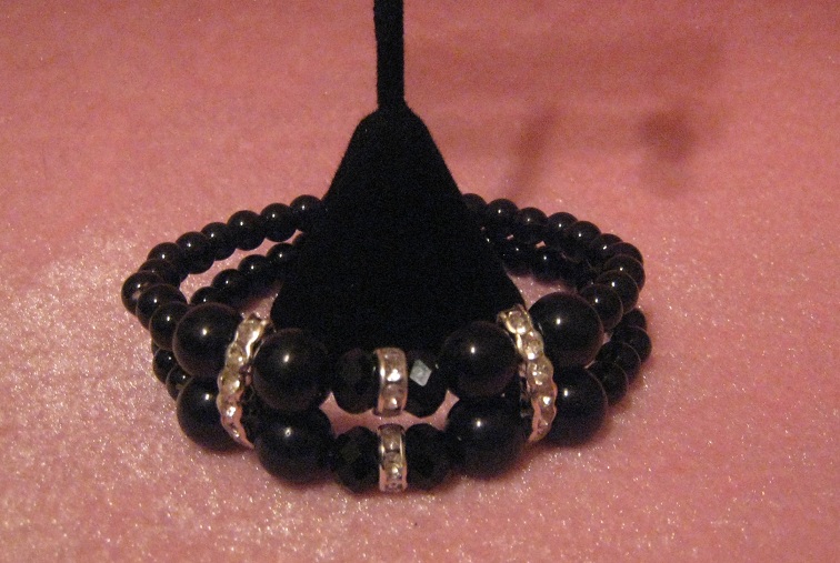 Black Glass Pearl Bracelet Set