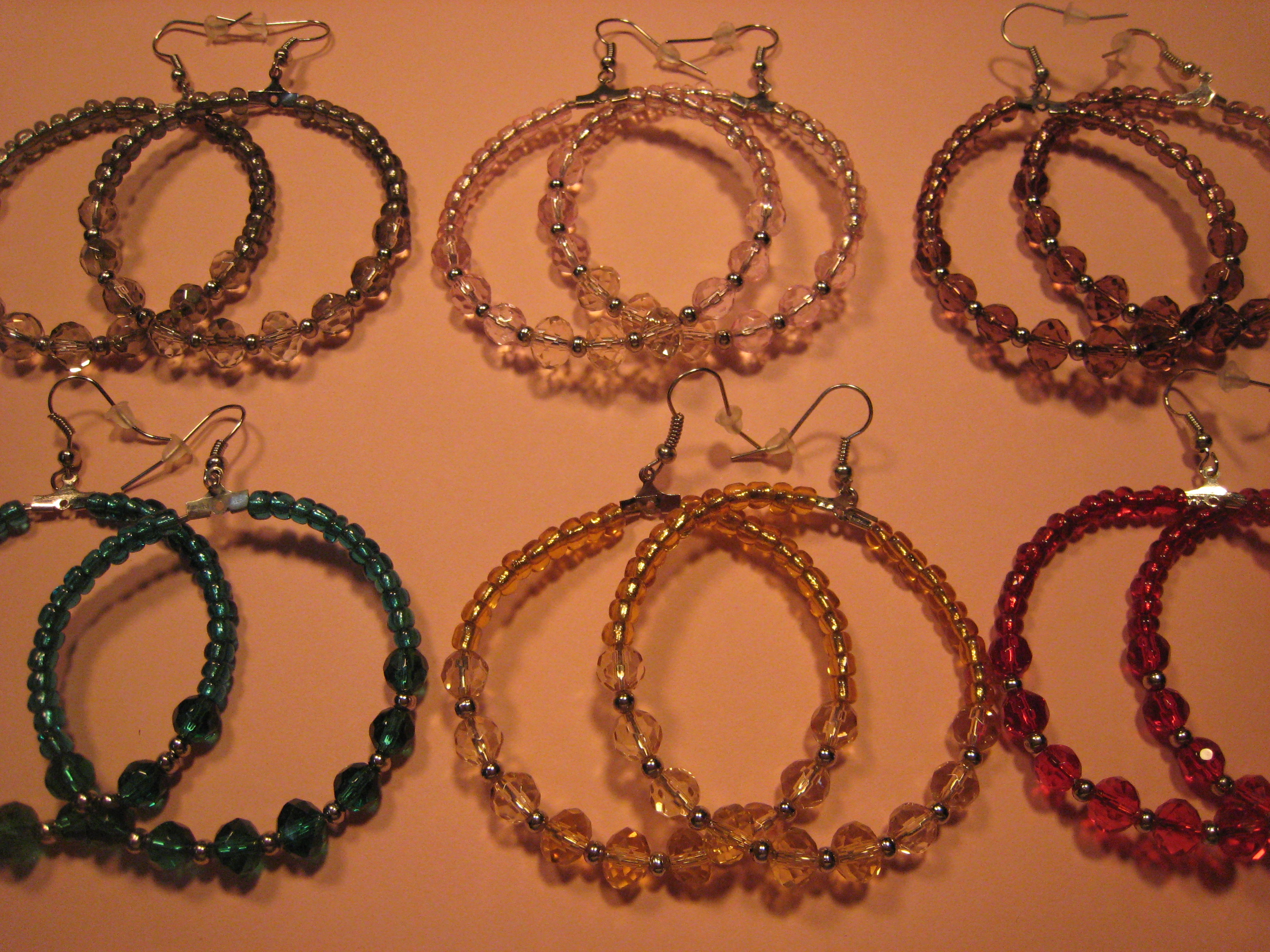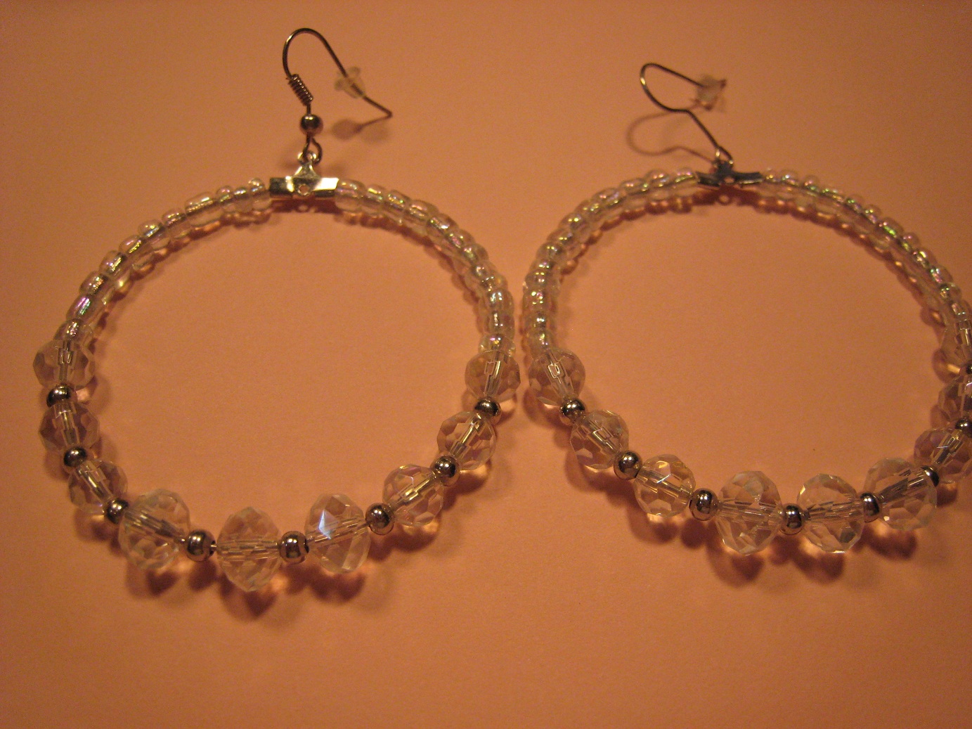 Lightweight yet highly styled glass and acrylic seed beaded hoops adorned with seed beads, metal spacer beads and Swarovski Crystal beads. Hoop measures almost 2" across and has steel earwires.