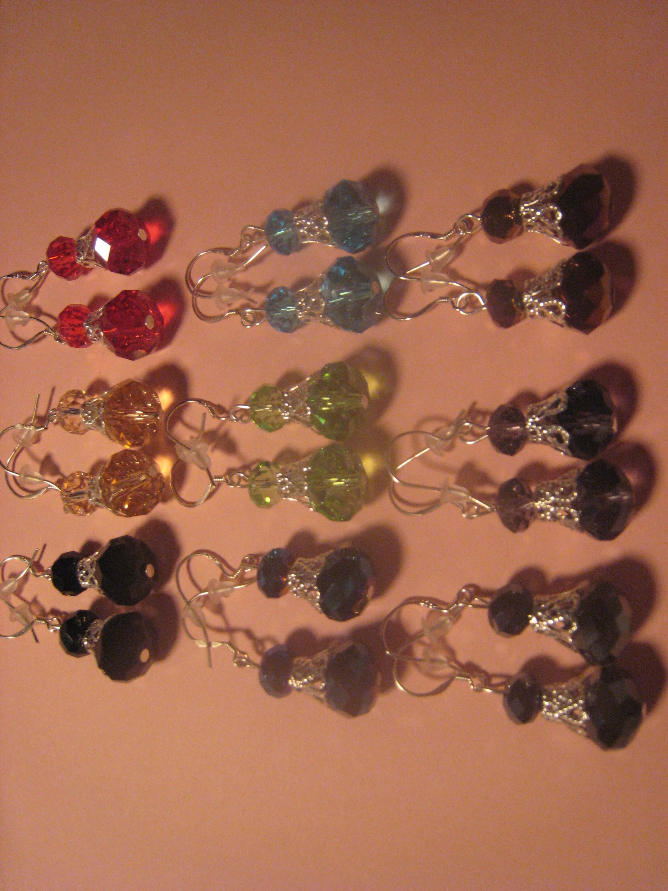 A Swarovski Crystal bead atop a sp bead cap with a Swarovski Crystal drop make up these beautiful earring. They measure just over 1"L and have surgical steel fishhook earwires.
