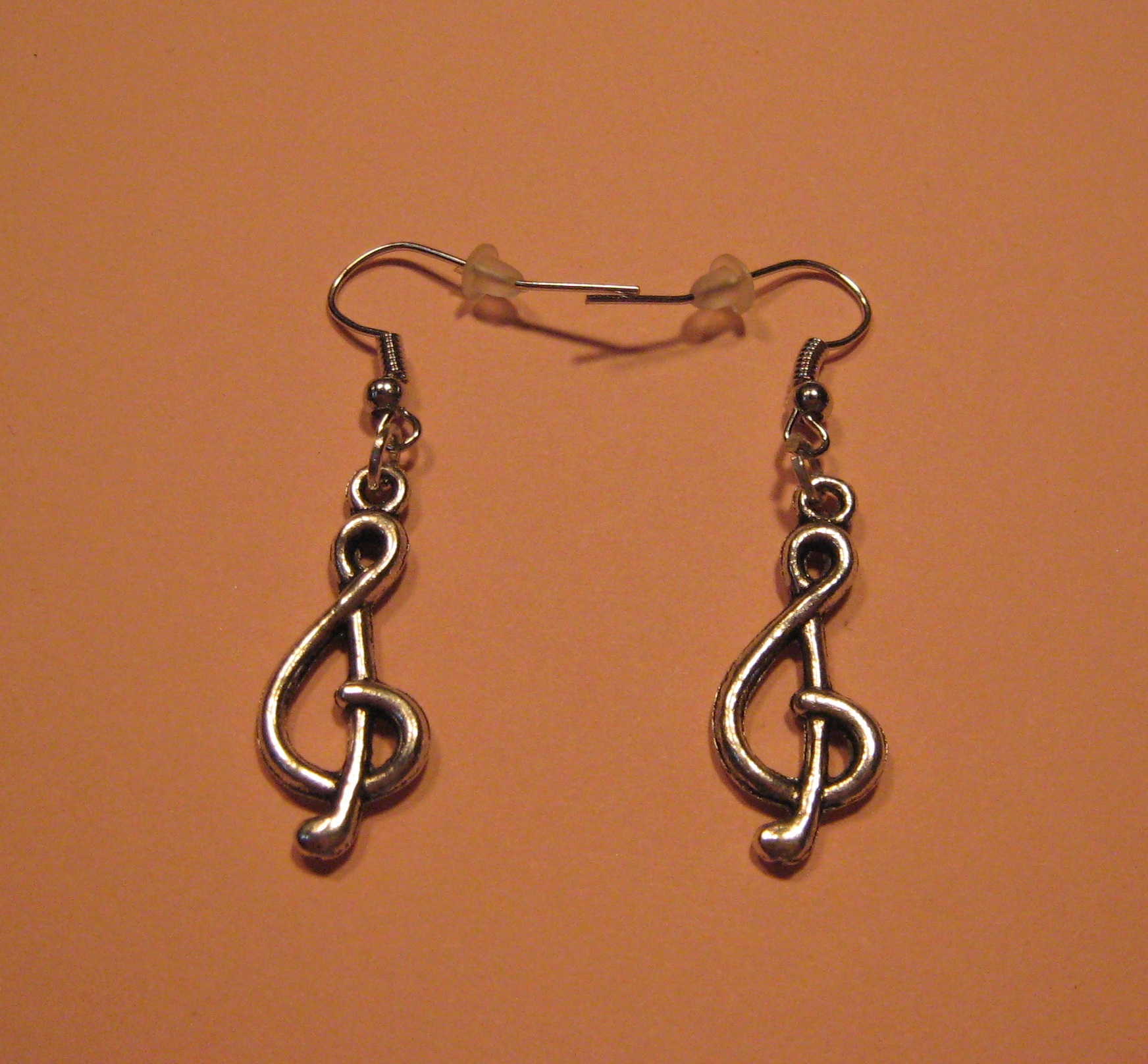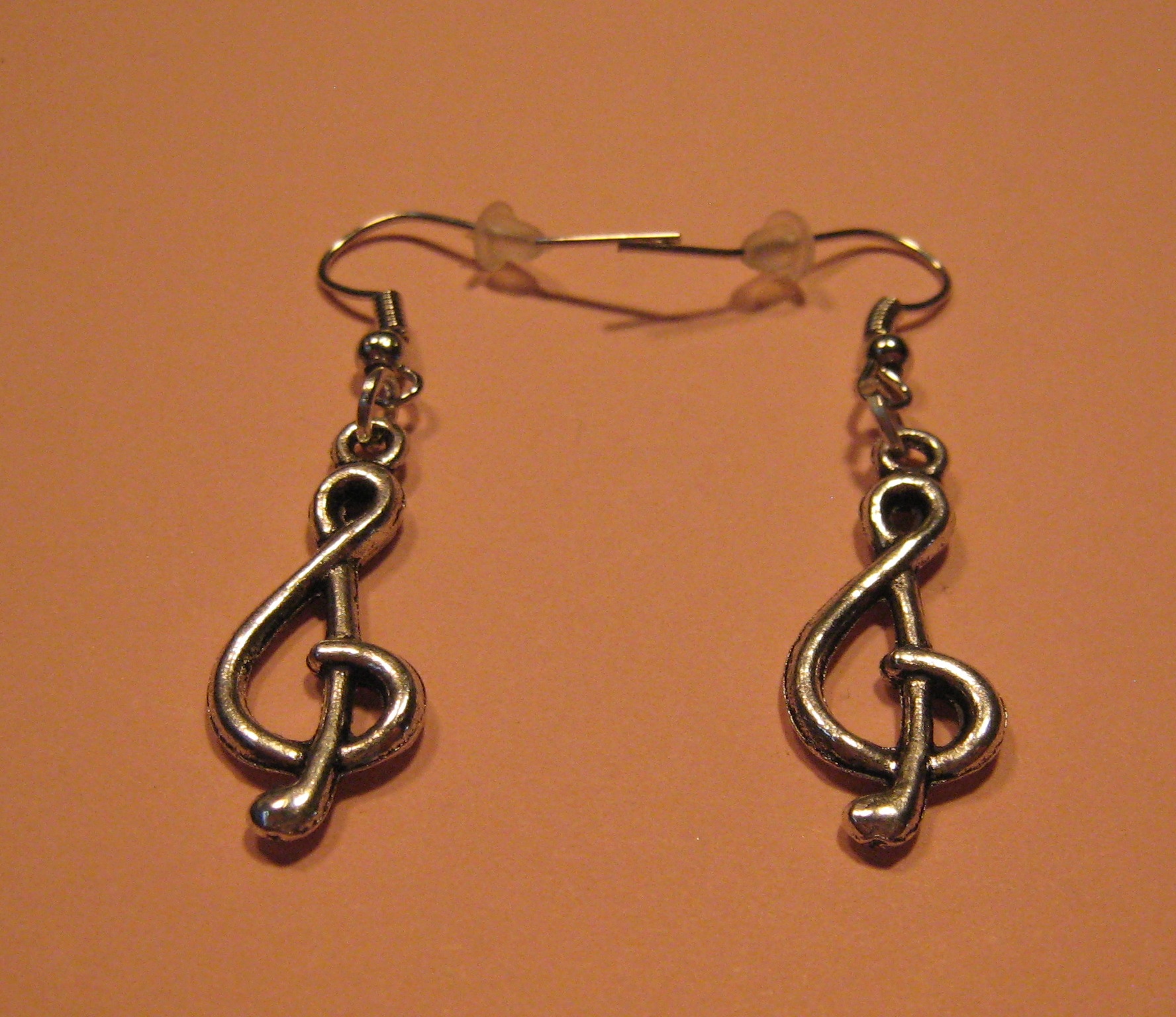 1 1/4" antiqued pewter (lead & nickel free) musical note charms on steel fishhook earwires.