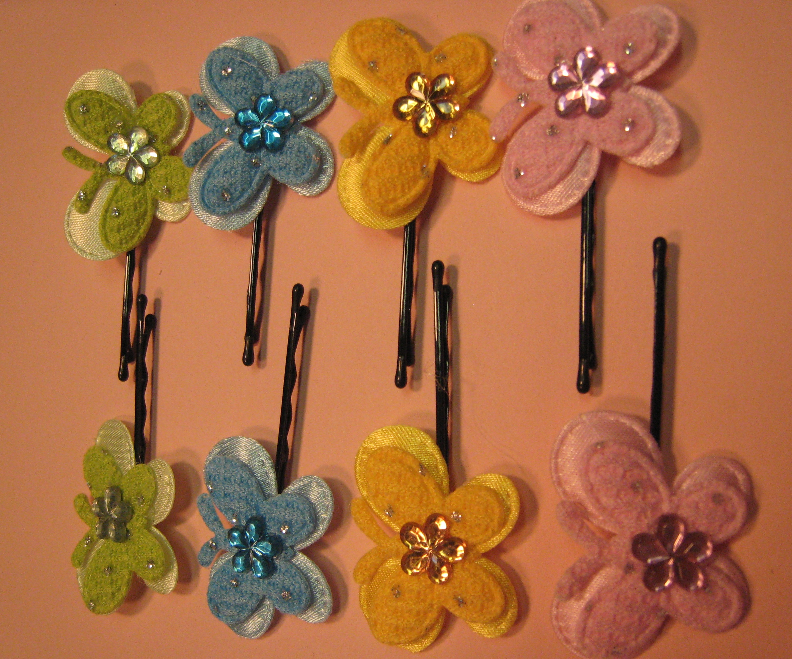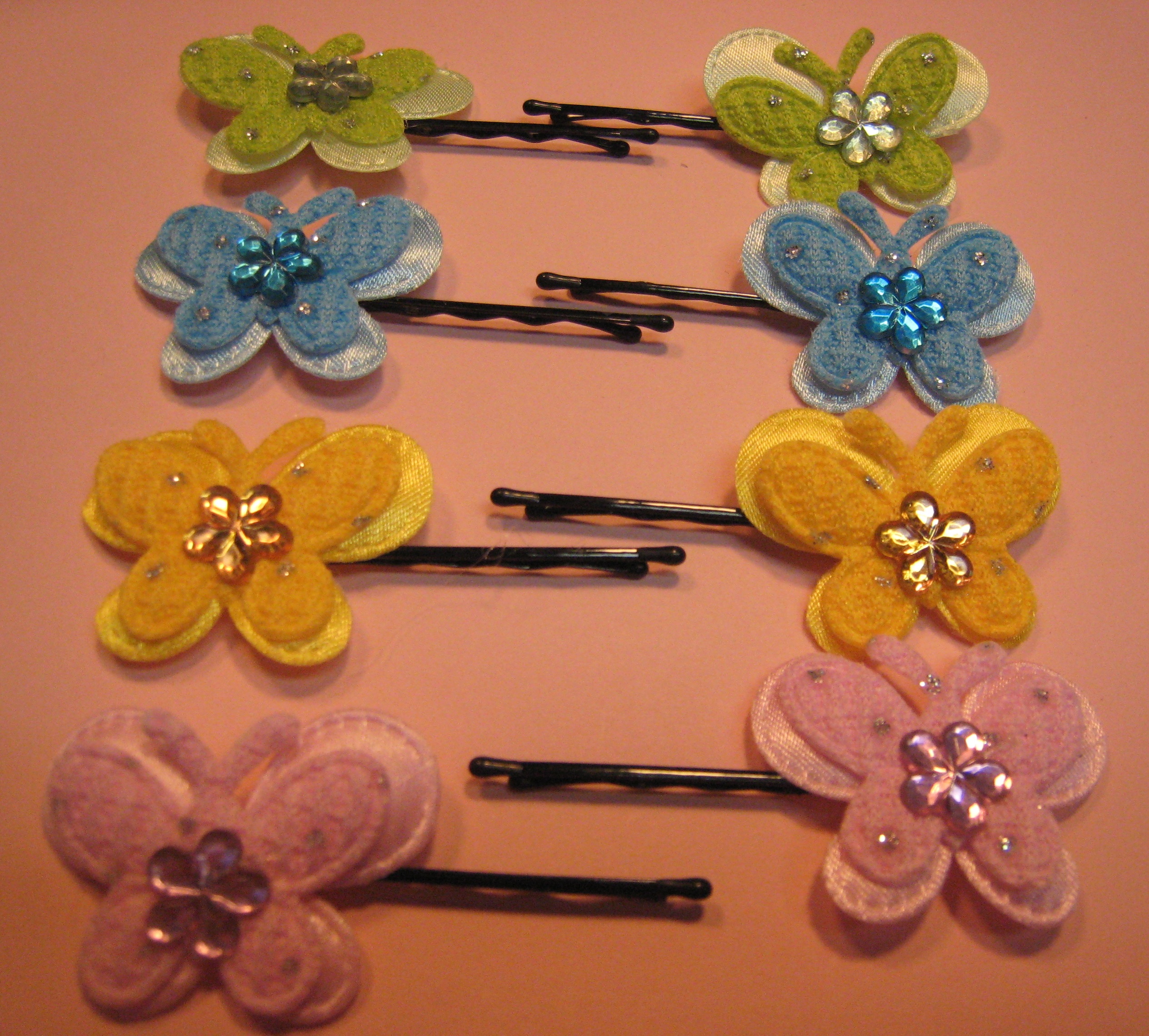 Cute tiny butterflies with an applique center hot glued on to a bobby pin.