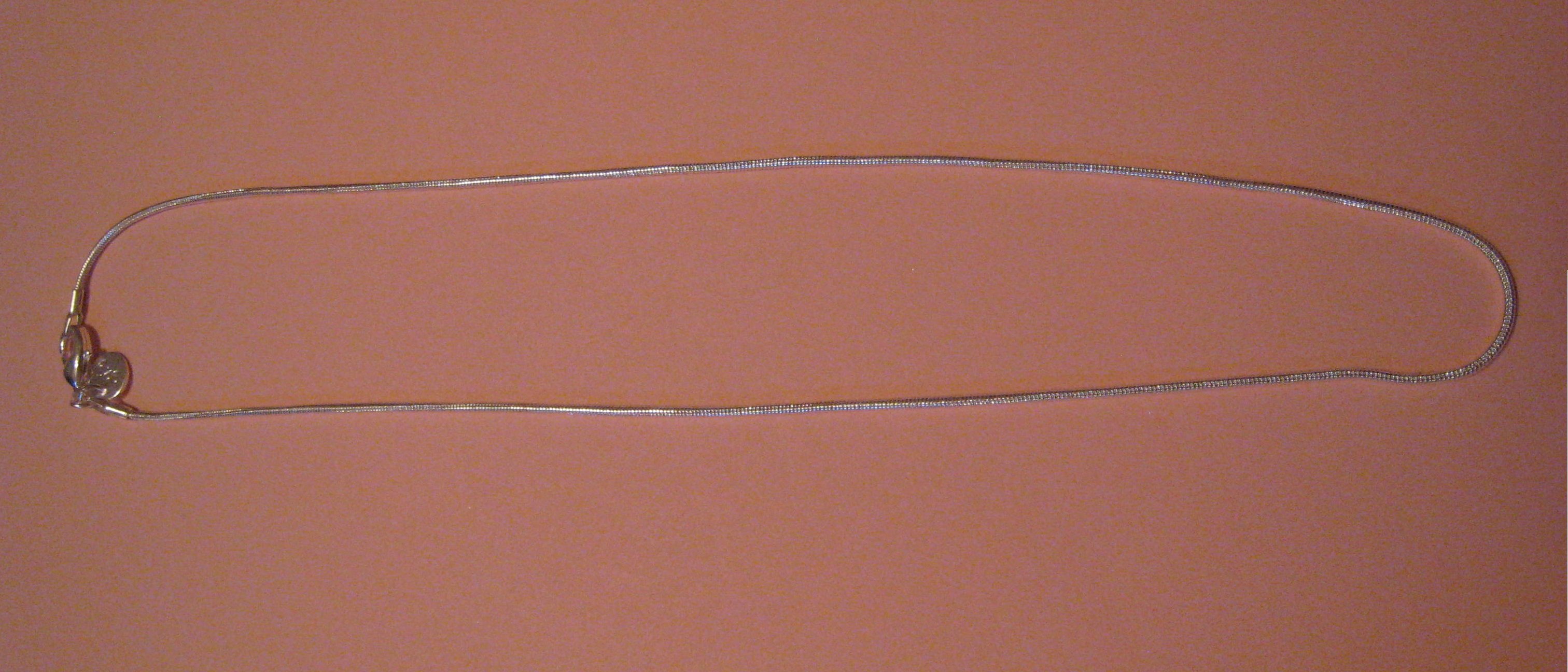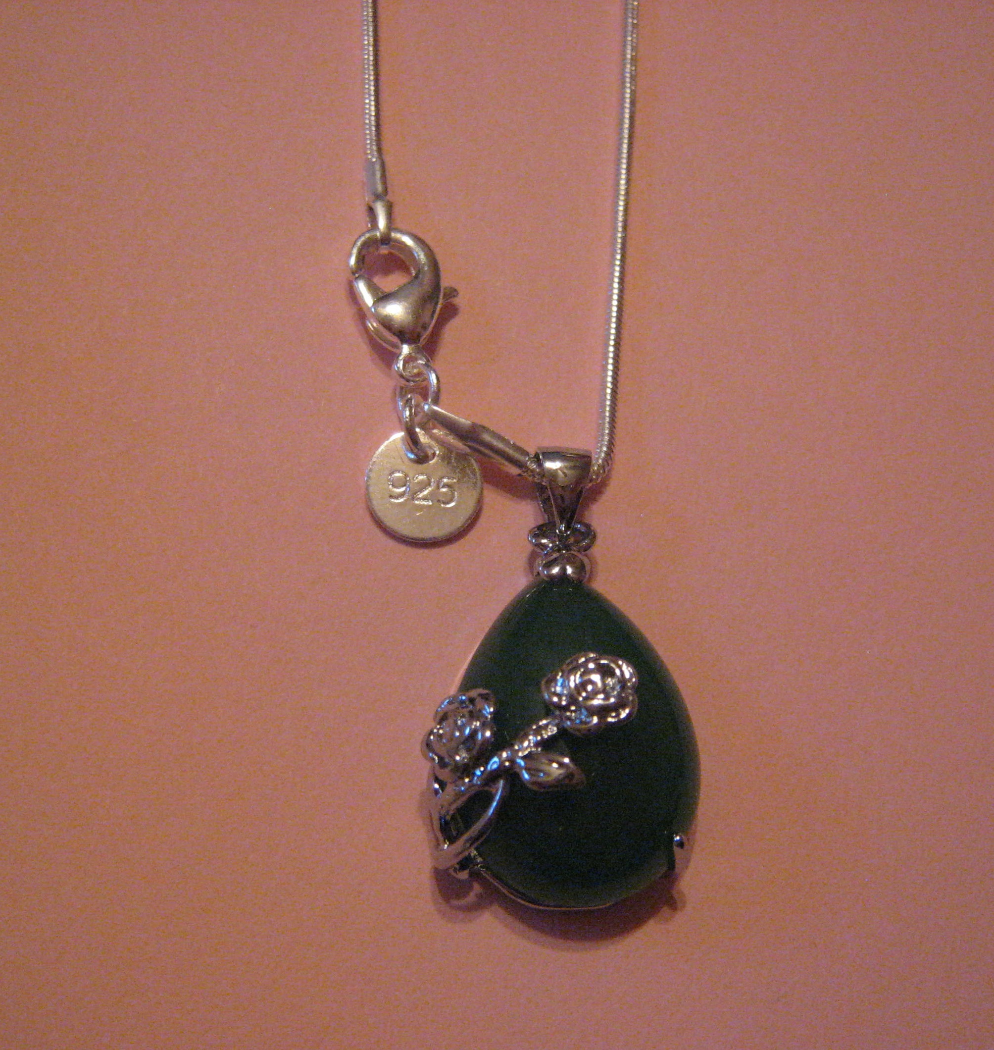 Simulated Jade stone with metal highlights on a 16" Silver chain with a lobster claw clasp.