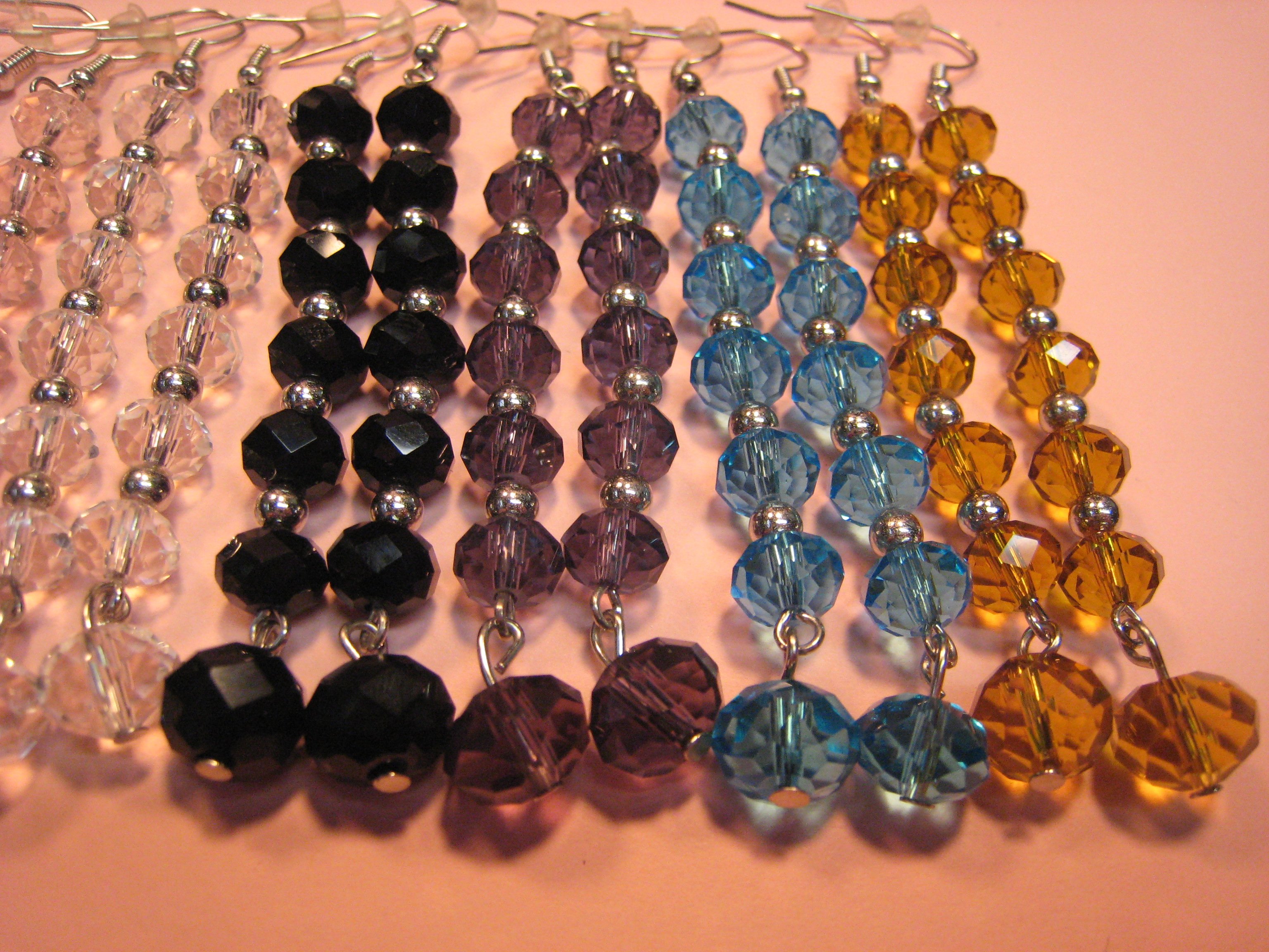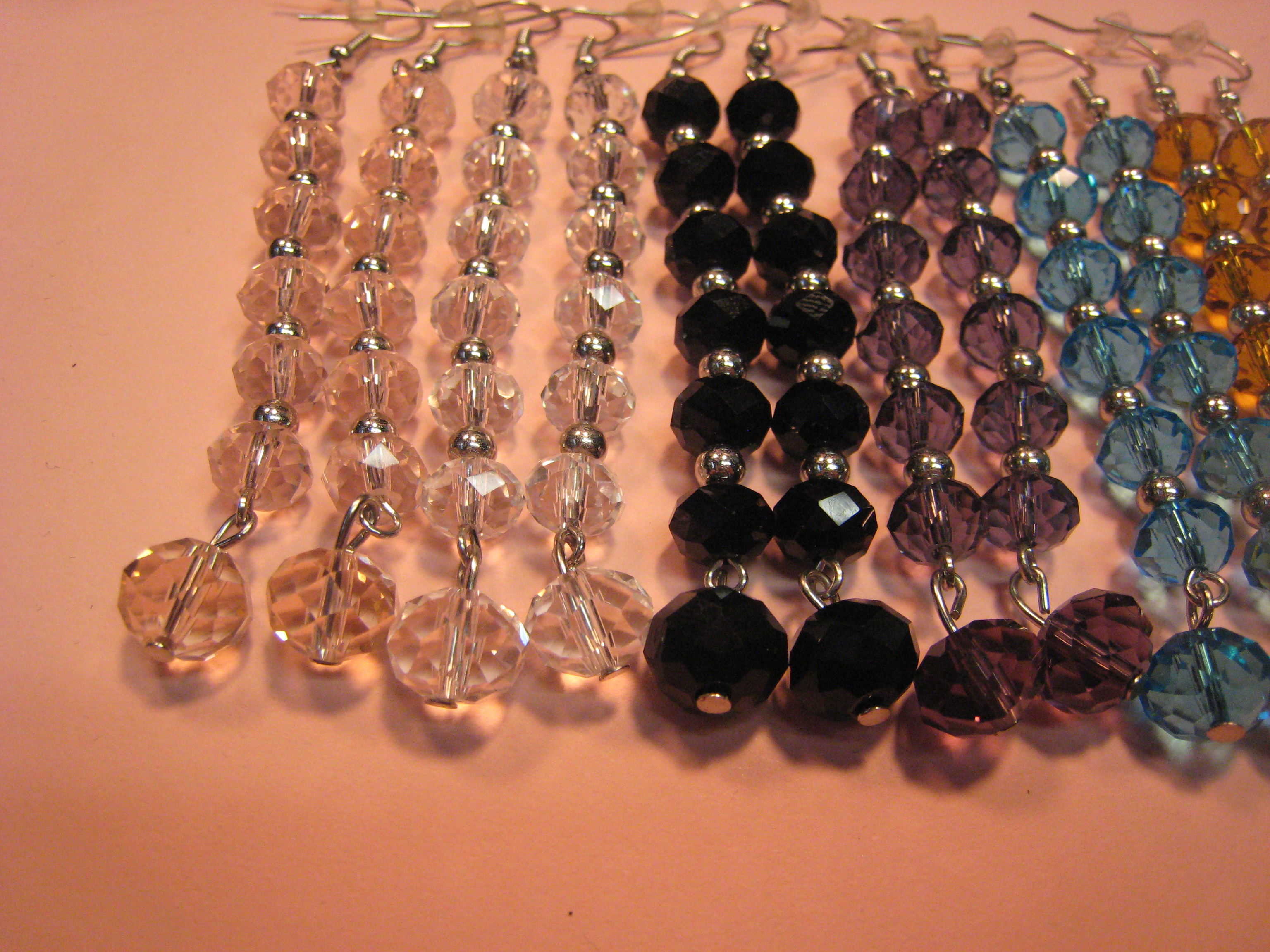 These beautiful earrings are made with colored crystals and metal spacer beads. They measure just over 3" long and are finished with a stainless steel fishhook earwire.