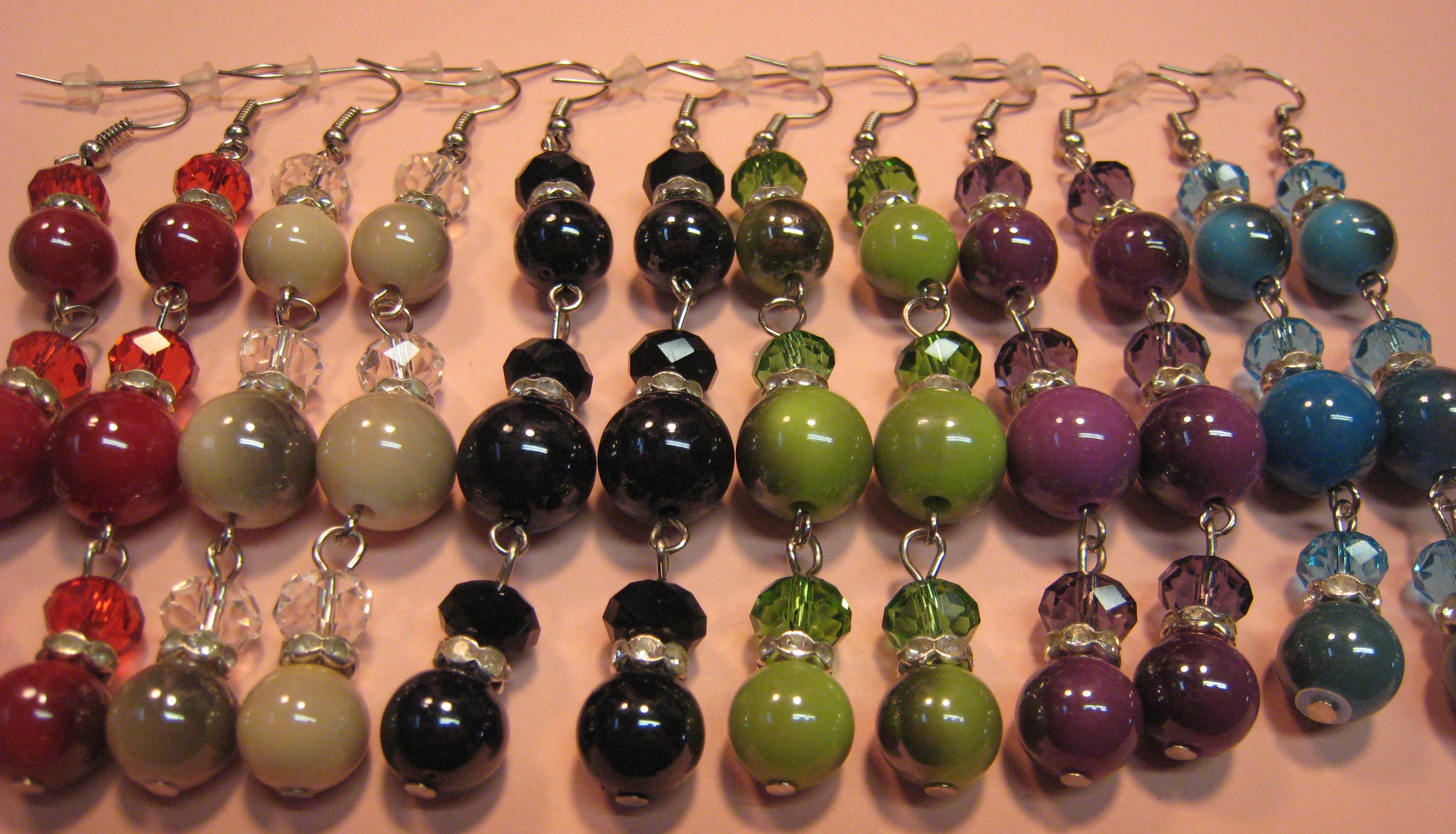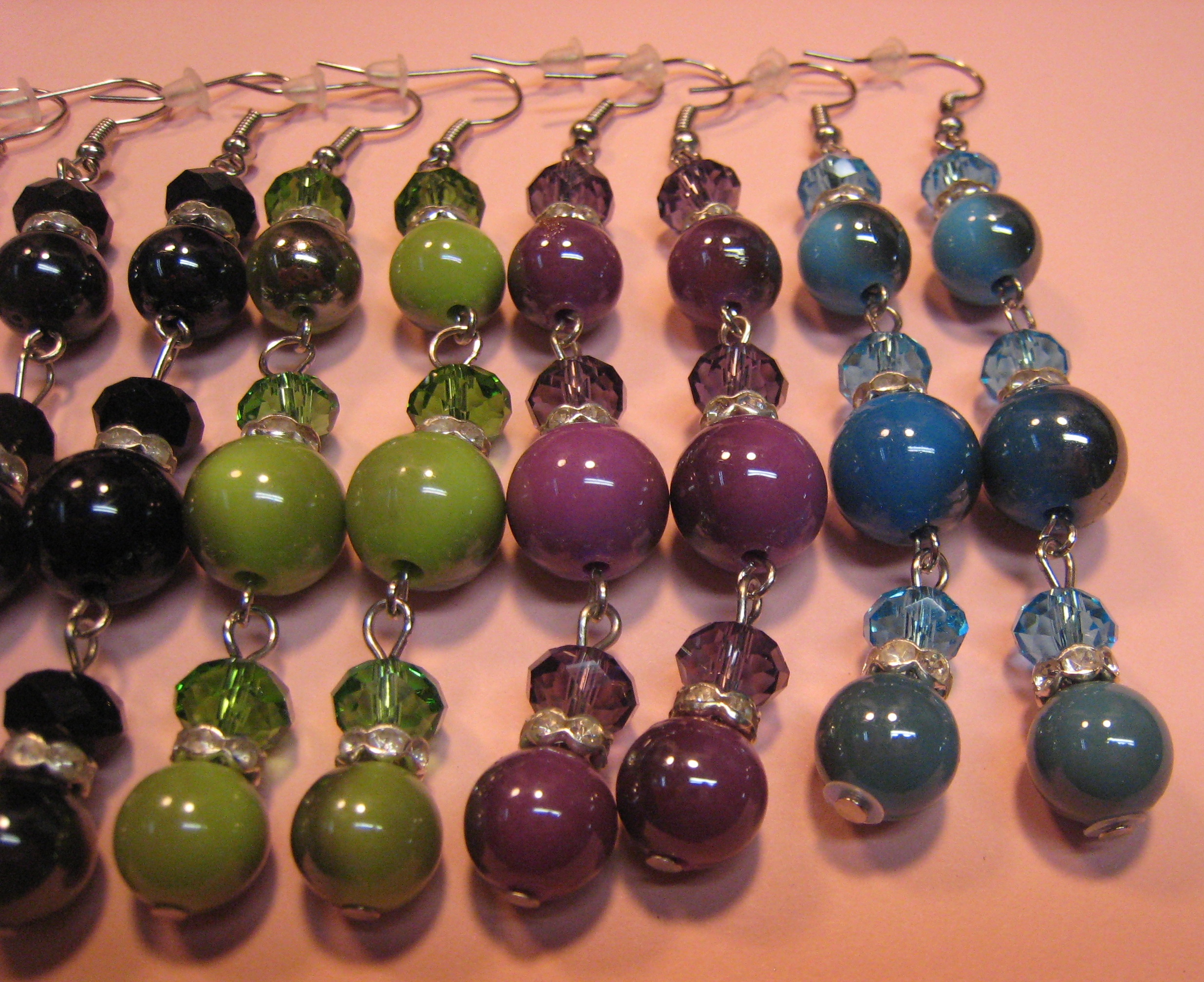 These beautiful earrings are made with crystal, rhinestone encrusted rondelle beads and glass pearl beads. They measure just over 3" long and are finished with a stainless steel fishhook earwire.