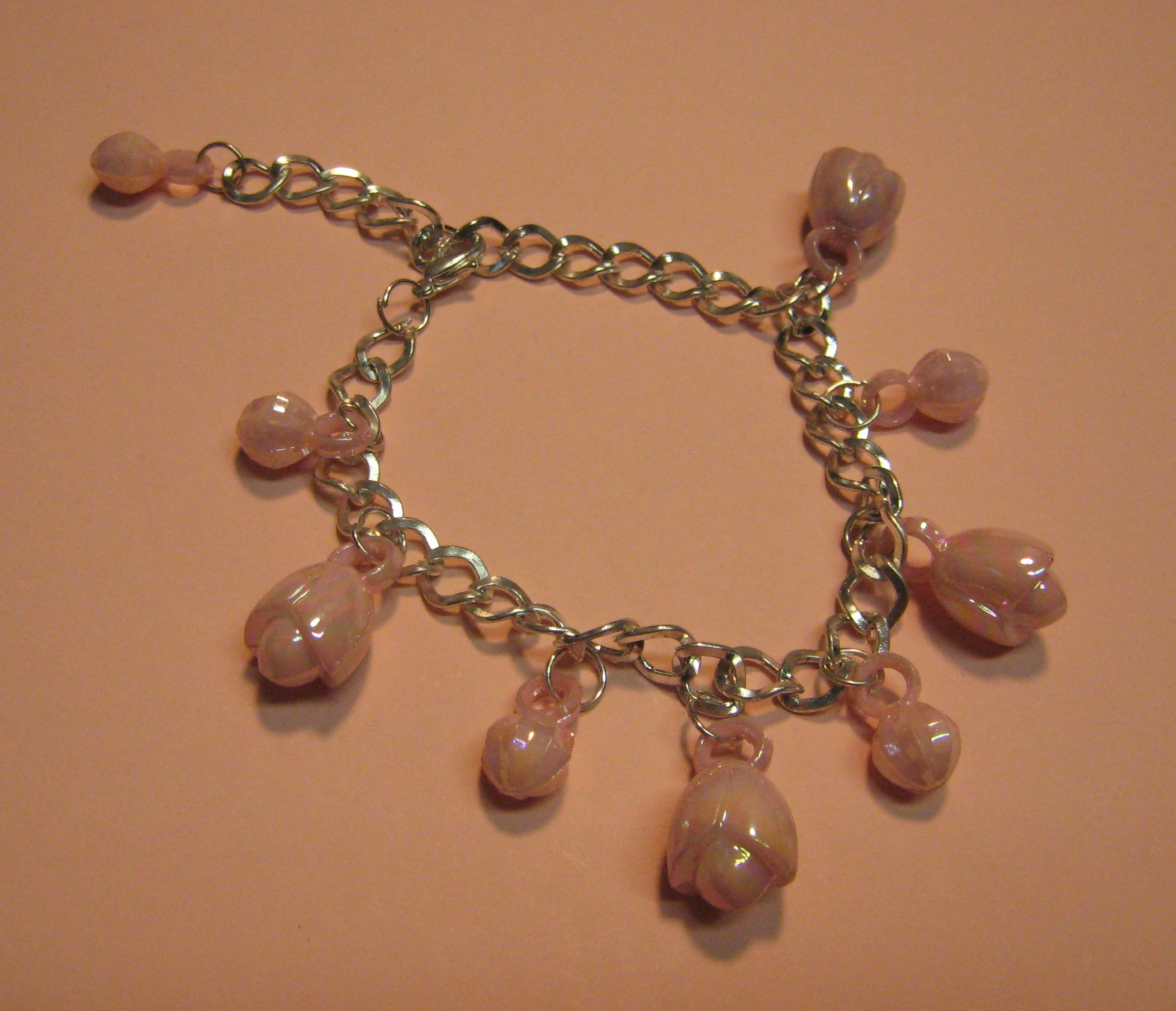 Metal & Pink Plastic Charm Bracelet